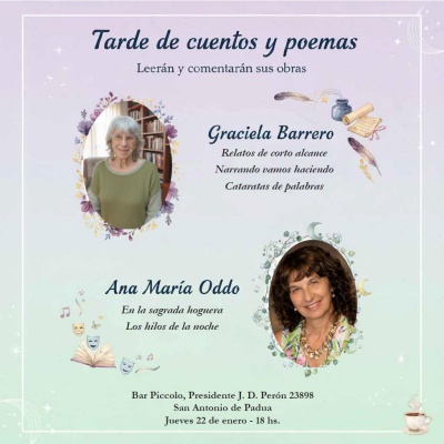 Descripción: Tarde de cuentos y poemas con Graciela Barrero y Ana María Oddo.