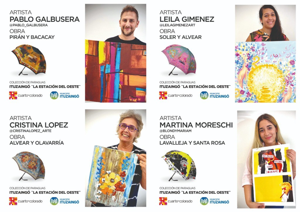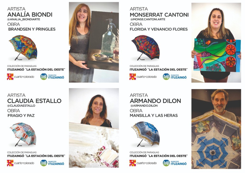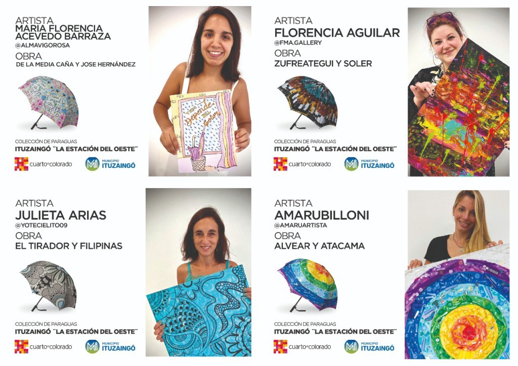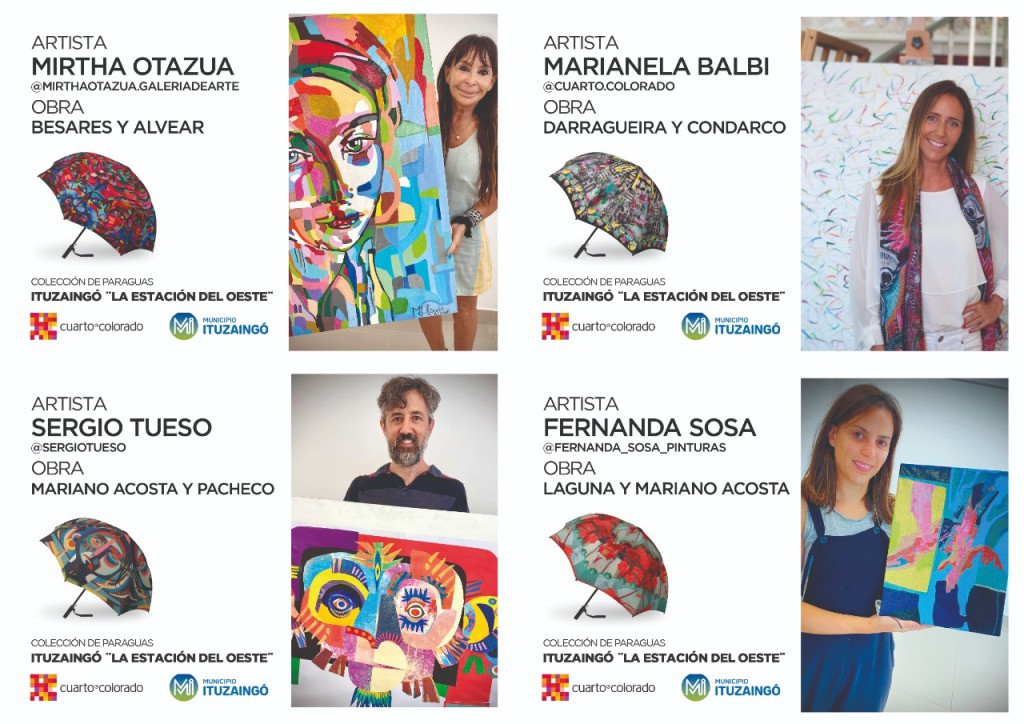 Ituzaingó, La Estación del Oeste es un conjunto de 19 paraguas, intervenidos artísticamente, cocreados por Cuarto Colorado y los artistas elegidos de Ituzaingó, con el acompañamiento de la Dirección de Cultura del Municipio de Ituzaingó. “El objetivo de Cuarto Colorado es difundir, visibilizar y empoderar artistas inéditos, en situación de vulnerabilidad. Lo hacemos con difusión, con redes y también con capacitación y distintas herramientas. A principios de este año acerqué este proyecto a la Dirección de Cultura de Ituzaingó y les gustó, acordamos entonces hacer una colección de paraguas co creados con artistas de Ituzaingó”, explicó Balbi a Castelar Digital.