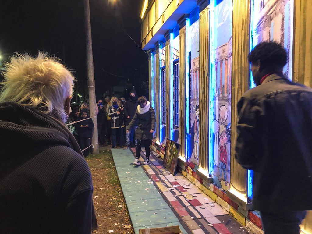 En la inauguración, los primeros cien vecinos que se acercaron pudieron formar parte del evento. Como si se tratase de un casamiento griego, cada visitante podía romper un plato frente al Partenón. No faltaron risas y fotos.