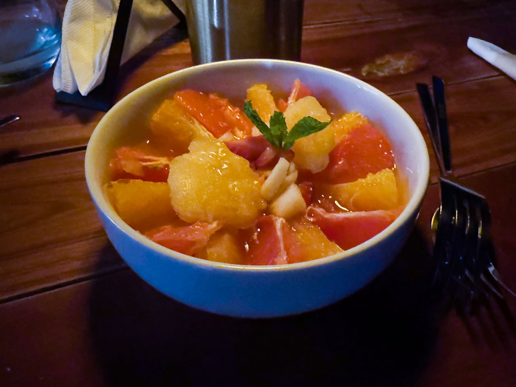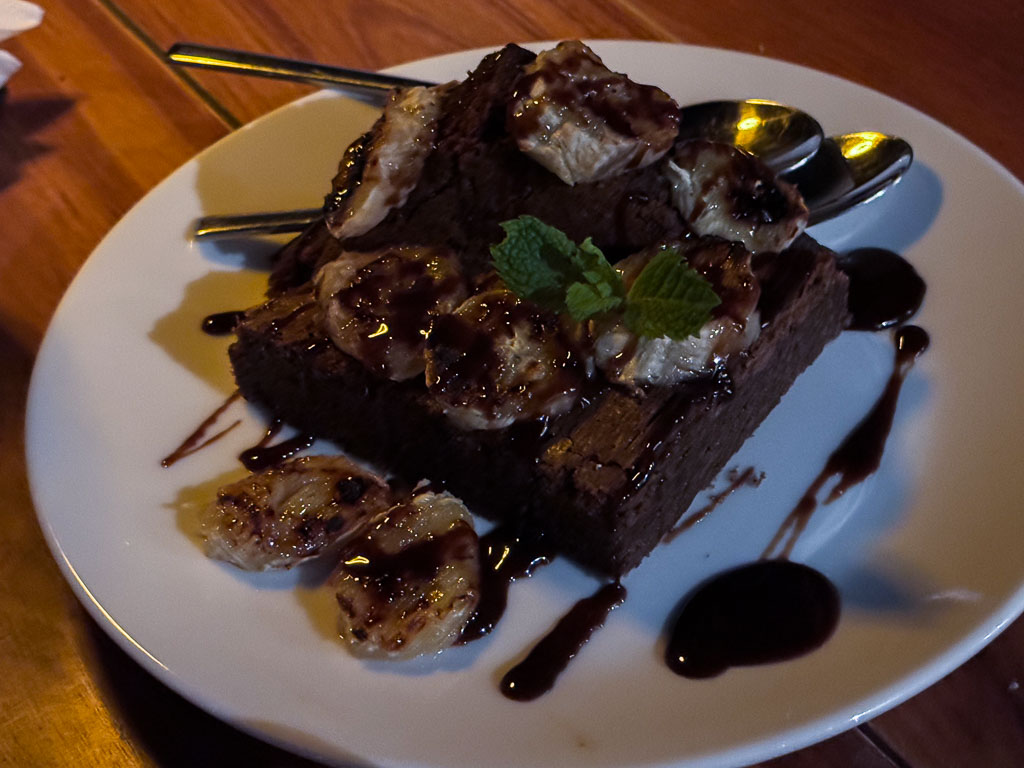 El cierre dulce llegó con un brownie con banana asada, helado y frutas marinadas en almíbar de menta, uno de los postres de la casa.