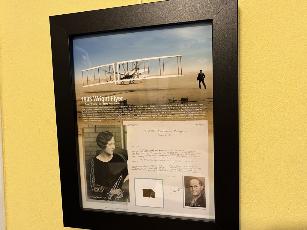 Entre los objetos más curiosos se encuentra un pequeño fragmento certificado de la tela original del Flyer de los hermanos Wright, considerado el primer avión de la historia. En el hangar también se puede ver un Boeing Stearman que continúa en vuelo y es pilotado por el propio Seidel.
